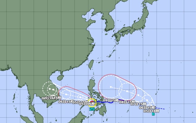 25m/s以上の暴風域 全域 65 km (35 NM)