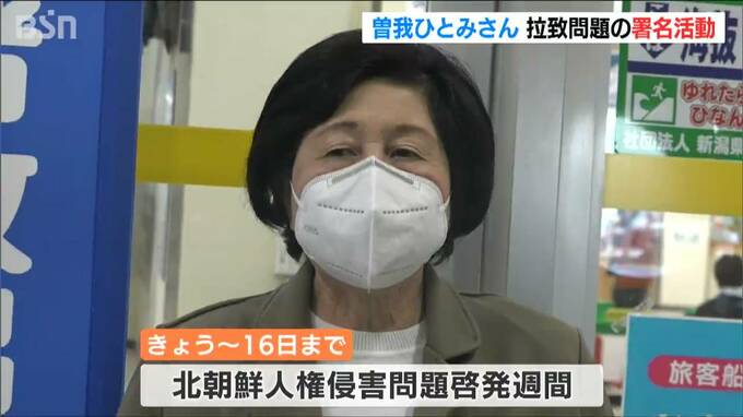 佐渡市の両津港ターミナルで10日行われた署名活動は、北朝鮮人権侵害問題啓発週間の一環として行われたもので、拉致被害者の曽我ひとみさんら12人が参加しました。