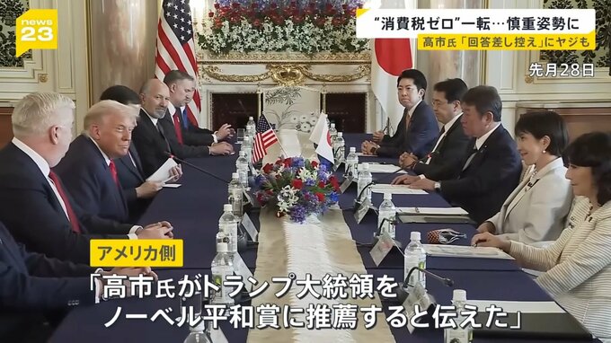 10月28日に行われた日米首脳会談。アメリカ側は、「高市氏がトランプ大統領をノーベル平和賞に推薦すると伝えた」と説明しています。