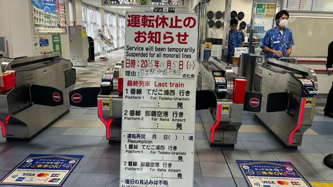 5日午前8時30分現在、那覇市などで運行するモノレール「ゆいレール」が全線運転を見合わせている。