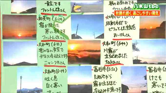 大和町では川霧が立ち込め、幻想的な風景が広がりました。