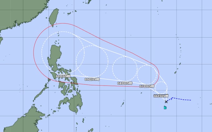 進行方向、速さ 西北西 25 km/h (14 kt)
