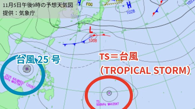 この熱帯低気圧は、きょう午後9時の気象庁の予想天気図【画像②】をみると「台風」に発達する見込みだということです。
