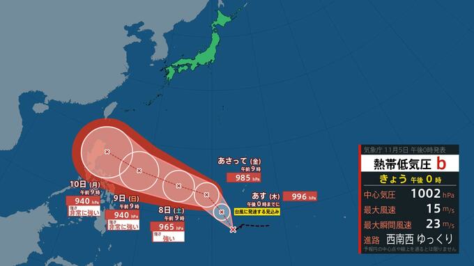 気象庁によりますと、きょう(5日)午前3時カロリン諸島付近に“台風のたまご”にあたる「熱帯低気圧」が発生しているということです【画像①】。