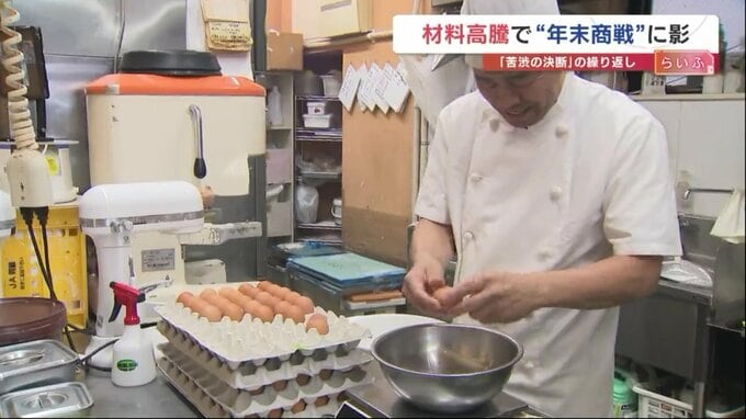 ケーキ作りに欠かせない卵の他、生クリームやチョコレートなども軒並み値上がりしているため、苦渋の決断の繰り返しだといいます。
