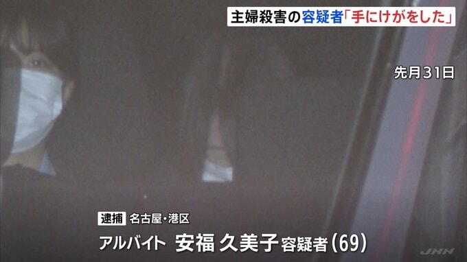 26年前、名古屋市西区で主婦が殺害された事件で、逮捕された69歳の女が「事件の際に手にけがをした」と話していることが分かりました。名古屋市港区のアルバイト・安福久美子容疑者(69)は1999年11月、名古屋市西…