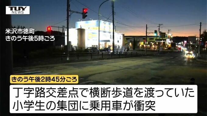 きのう午後、山形県米沢市の交差点で横断歩道を渡っていた小学生の集団に乗用車が衝突する事故がありました。