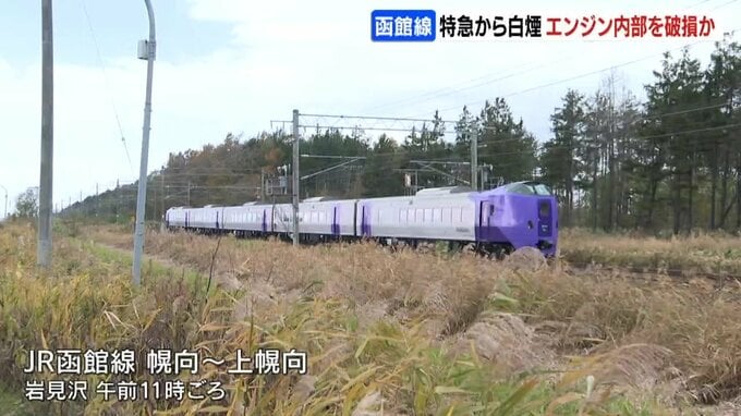 5日朝、北海道岩見沢市のJR函館線で走行中の特急列車が白煙が出たため、緊急停車しました。5日午前8時前、函館線の幌向と上幌向の間の下り線で、特急「宗谷」が最後尾の5両目から白煙が出たため緊急停車しました。…