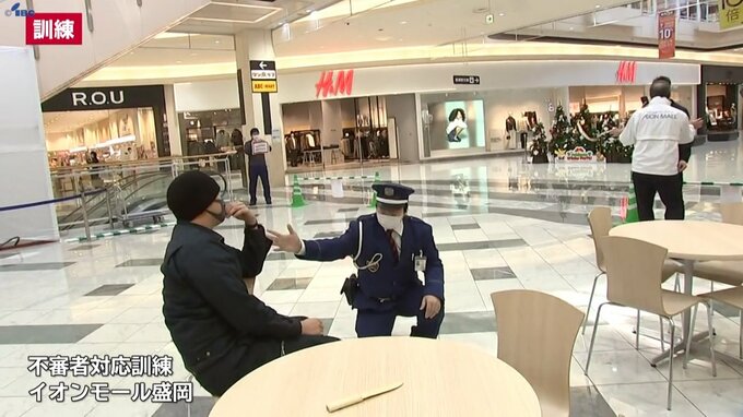 多くの買い物客が訪れる年末を迎えるのを前に、盛岡市の大型商業施設で刃物を持った不審者を想定した訓練が行われました。