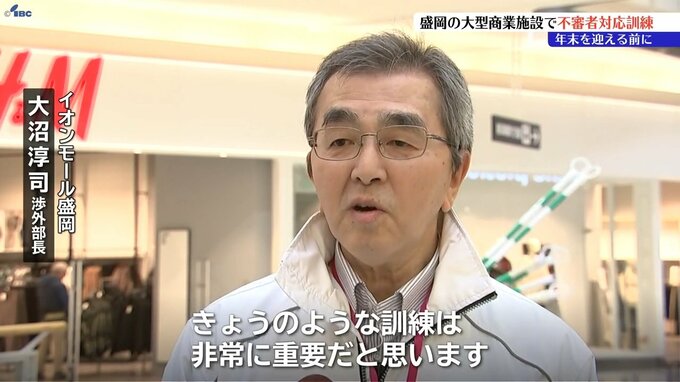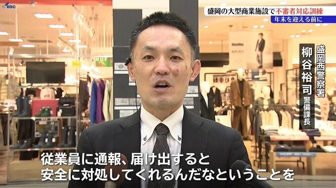 多くの買い物客が訪れる年末を迎えるのを前に、盛岡市の大型商業施設で刃物を持った不審者を想定した訓練が行われました。