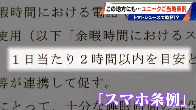 スマホの使用を1日2時間以内とするよう促す条例。子どもに限らず、全市民を対象にしたスマホ条例は全国初です。