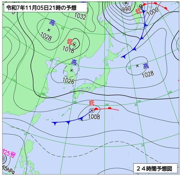 【台風情報・5日午後4時20分更新】ダブル台風はどちらも「非常に強い勢力」にまで発達か 台風25号と熱帯低気圧bの最新進路は…? 11月の台風 日本への影響・今後の天気は?【雨風シミュレーション・気象庁の最新情報あり】 青森テレビ 2025年11月5日(水) 14:35 国内 【天気図(最新・24時間・48時間予想図あり)】 気象庁HPより(11月5日午後2時現在) 気象庁HPより 気象庁HPより 気象庁HPより