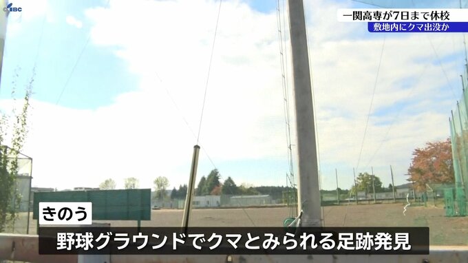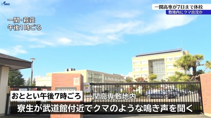 一関市にある一関高専は敷地内にクマが出没したとみられることから、7日まで休校となっています。