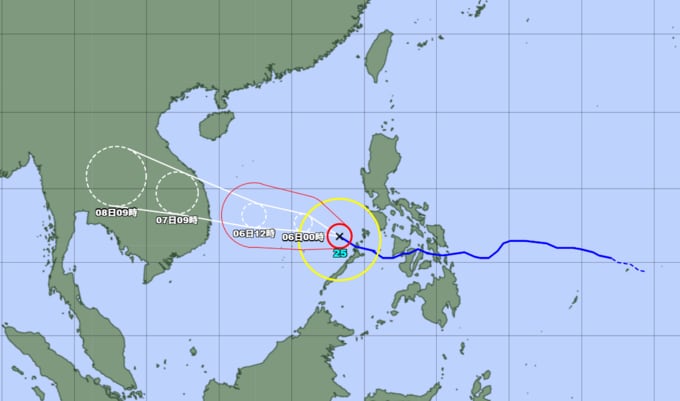 進行方向、速さ 西北西 20 km/h (12 kt)