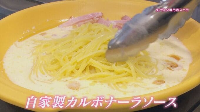 東京を中心に千葉・埼玉など7店舗を展開する人気店が東海地方初上陸!一番人気は、「とろける7種のチーズのカルボ」(1,078円)。店内で製麺しており、10時間以上熟成された麺はもちもち食感。仕上げに、24か月熟成させた、高級パルミジャーノ・レッジャーノを目の前でかけてくれます。