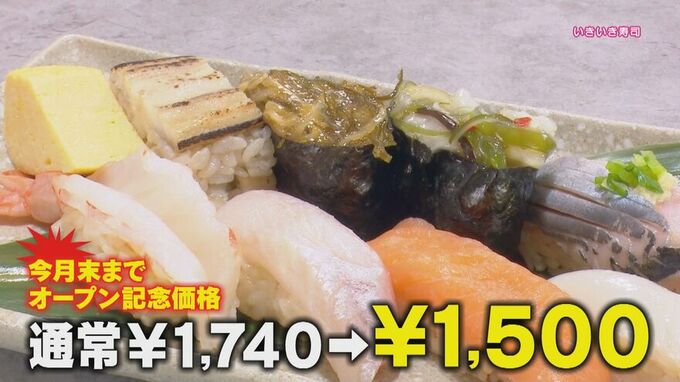 看板メニューは、「日替わりおすすめ握り」。北海道から直送だからこそ生で食べられるニシンやホッケの握りを含む11貫が、11月末までオープン記念価格として通常1,740円のところ1,500円で食べられます。