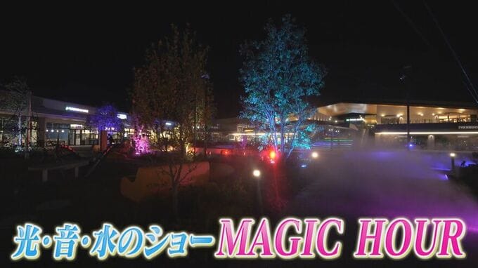「三井アウトレットパーク 岡崎」には他にも、お子さんが無料で遊べるスペースをはじめ、アウトレット最大の緑地面積を誇る広場に、ドッグランのスペースまで完備。夜になると、光・音・水を使った幻想的なショー「MAGIC HOUR」も開催されます。