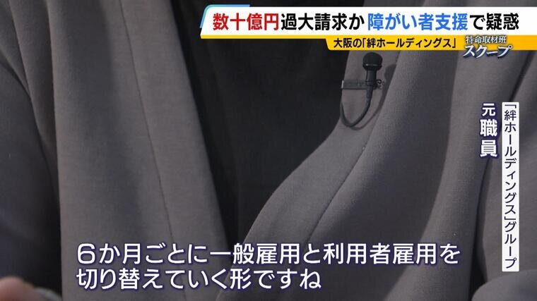 (「絆ホールディングス」グループ 元職員)「利用者が就職したいから一般就職するわけではなく、期間がたてば自動的に一般就職っていう形に、雇用が切り替えられて、また期間がたてば利用者に切り替わる。ただ環境も一切変わらず、仕事内容も変わらずのままが基本」