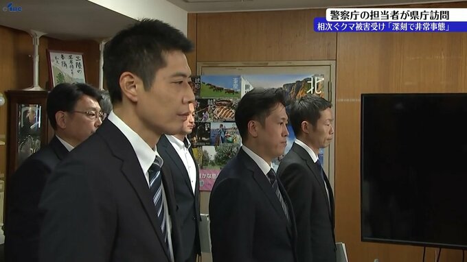 岩手県内でクマの出没や被害が相次ぐなか、警察官によるクマの駆除の協力に向け、警察庁の担当者が県庁を訪問し県内の被害状況や対策などについて聞き取りを行いました。5日は警察庁警備第三課の前田勇太課長ら担…