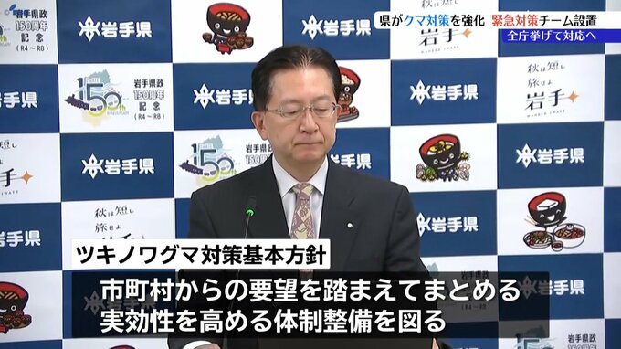 岩手県内で生活圏へのクマの出没や人への被害が相次いでいることを受けて、県はクマ対策の新たな基本方針を定め、捕獲体制の強化や緊急対策チームの設置を決めました。