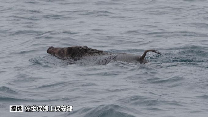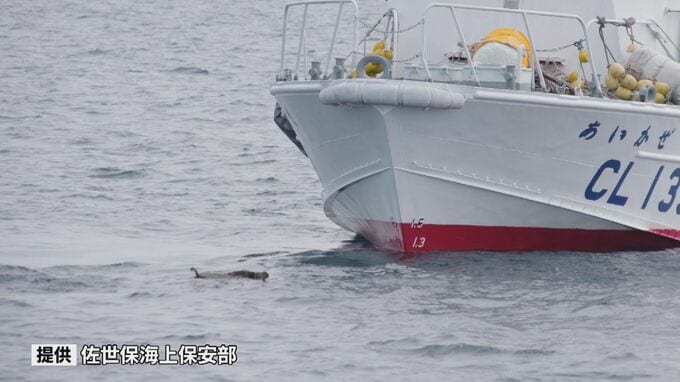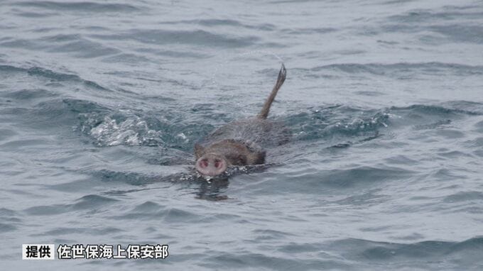 泳ぐイノシシが見つかったのは、長崎県西海市「崎戸島」の沖、およそ500メートルの海上です。先月30日の昼ごろ、付近を哨戒中だった佐世保海上保安部の巡視艇「つばき」の乗組員がその様子を撮影しました。
