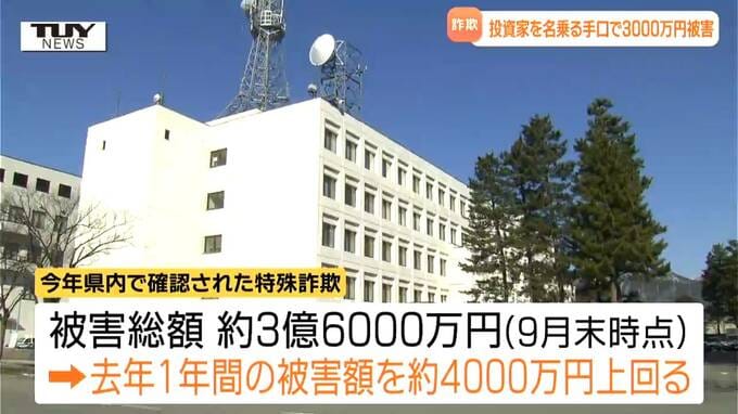 今年県内で確認された特殊詐欺の被害総額は、先月末時点でおよそ3億6000万円に上り、去年1年間の被害額をおよそ4000万円上回っている状況です。