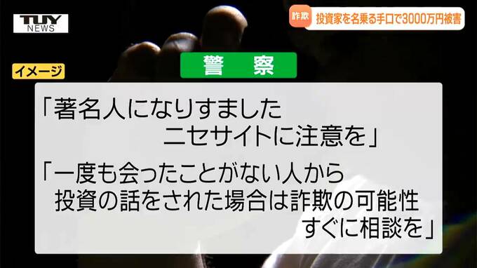 警察は、著名人になりすましたニセのサイトに注意することや、一度も会ったことがない人から投資の話をされた場合は詐欺の可能性があるとして、すぐに相談してほしいと呼びかけています。