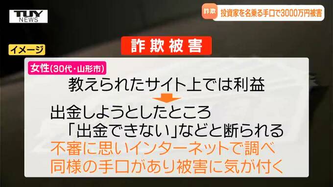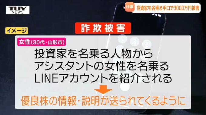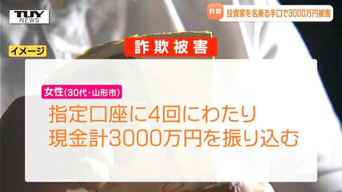 有名な投資家を名乗りSNSで投資をすすめる手口で、山形市の30代の女性が現金3000万円をだましとられる被害にあいました。