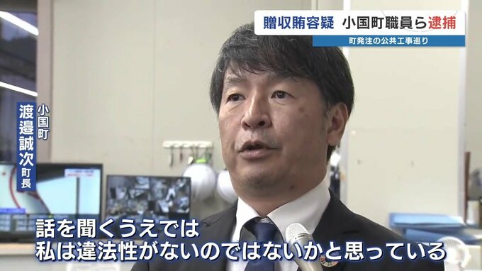 熊本県小国町発注の公共工事への参加をめぐり、元建設課長の男ら2人が贈収賄の疑いで逮捕された事件で、逮捕された2人は中学時代の先輩後輩で、小国町の渡邉誠次町長は「話を聞くうえでは、違法性がないのではない…