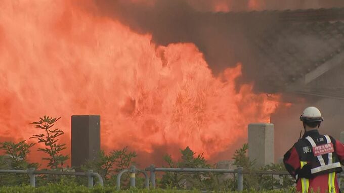 「火災現場です、黒い煙とともに激しい炎が上がっています。」