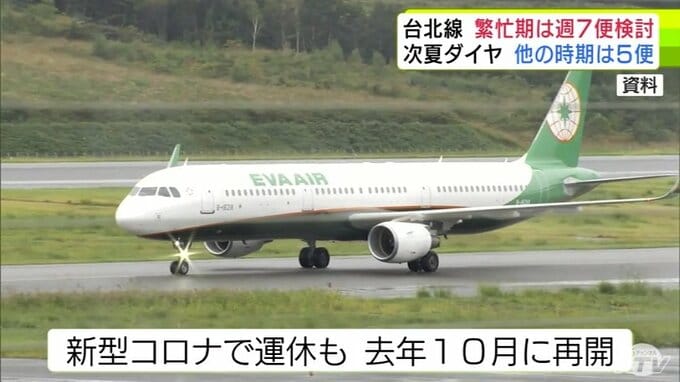 エバー航空の青森―台北線の増便についてです。青森県の宮下宗一郎 知事は、2026年の夏ダイヤから「サクラ」や「夏祭りシーズン」には週7便、その他の時期は週5便への増便が前向きに検討されていることを明らかに…