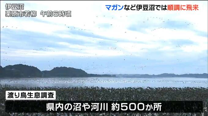 2025年シーズン初めてとなるマガンなど冬の渡り鳥の生息調査が11月6日朝、宮城県内各地で行われました。宮城県北部の越冬地、伊豆沼では順調に飛来が進んでいることが確認されました。