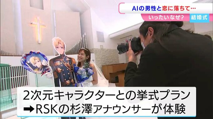 去年、「好きな漫画やアニメのキャラクターと、結婚式を挙げたい」という声が多いことから、2次元キャラとの挙式プランを作り、RSKでも取材をしました。(【画像⑰】は2次元キャラとの挙式を体験したRSK杉澤眞優アナウンサー)。