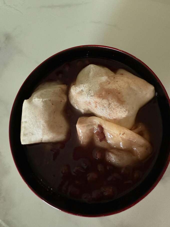 お義母さんが小豆から煮たぜんざいを作ってくれたことにも触れ、「すごい!優しい甘さめちゃくちゃおいしい!!」と感謝の気持ちを述べています。