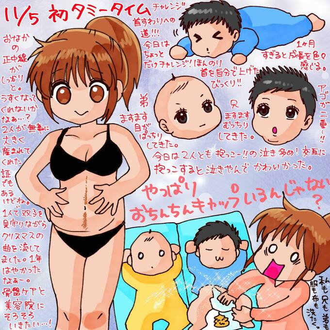 最後には「双子が寝てる時間、絵日記描いたりクラシック流したりしてみてます」と自分の時間の過ごし方を紹介し、投稿を締めくくりました。