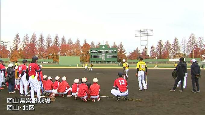 平林金属ソフトボール部とシティライト岡山硬式野球部の選手らが小学生に指導します。新型コロナの影響で3年ぶりの開催となりました。