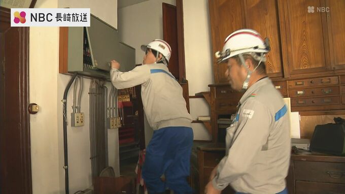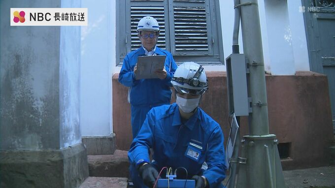 6日は、九州電力送配電など3社の職員8人が世界遺産に登録されている長崎市の大浦天主堂など市内4か所で、配電設備の点検や避雷針が正常に機能しているかを確認しました。