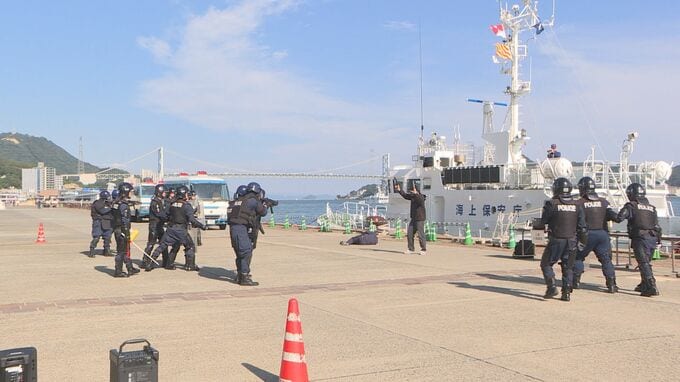 テロリストの侵入を水際で防ごうと5日、関係機関が連携を確かめる訓練が山口県下関市でありました。
