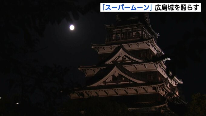 「スーパームーン」は、広島城の天守を幻想的に照らし出していました。