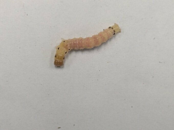 幼虫は体長3センチほどで、体色は淡い緑色や桃色をしています。