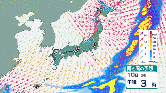 【ダブル台風】台風25号に続き「熱帯低気圧=台風のたまご」が「台風26号(フォンォン)」に発達 最大瞬間風速は65メートルの予想 雨風シミュレーション&16日間天気予報【気象庁台風情報 6日午後2時更新】 RSK山陽放送 2025年11月6日(木) 14:00 国内 天気 10日(月)3時間ごとの雨と風のシミュレーションをみる