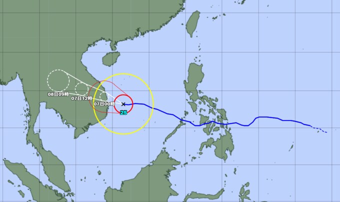 25m/s以上の暴風域 全域 140 km (75 NM)