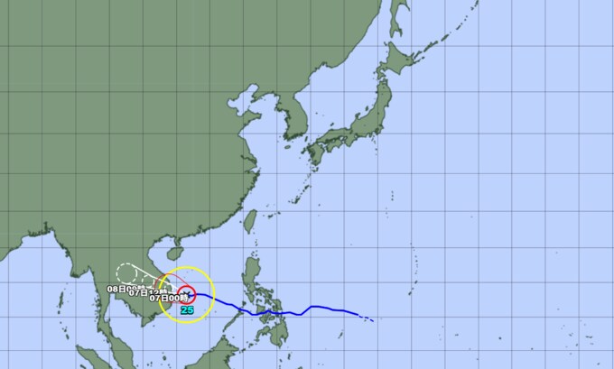 進行方向、速さ 西北西 25 km/h (14 kt)