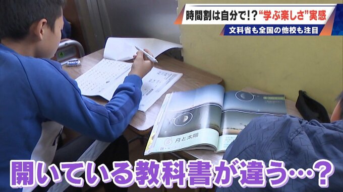 6年生の授業をよく見ると、開いている教科書が同じじゃありません。理科を勉強している子の隣は「漢字」。さらに「算数」や「社会」。1人1人やっていることがバラバラです。