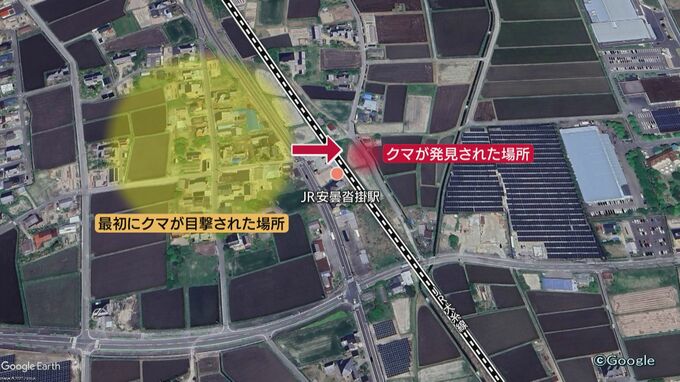 子グマが潜んでいたのは、大町市常盤のJR大糸線・安曇沓掛駅の近くにあるやぶです。