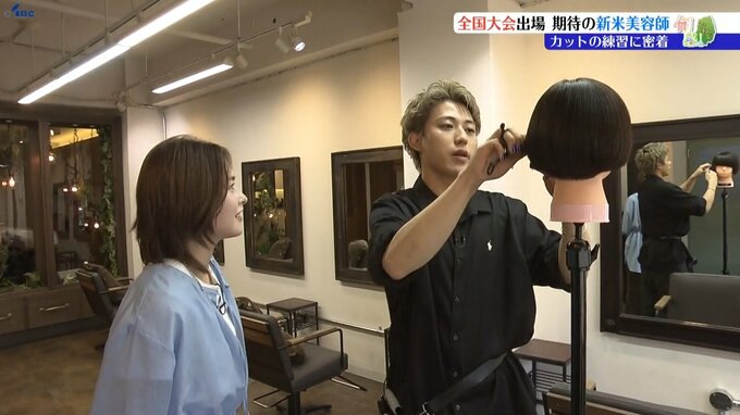 山﨑さんはこの日、盛岡市の大通店で開店前の午前8時から全国大会へ向けたカットの練習を行いました。