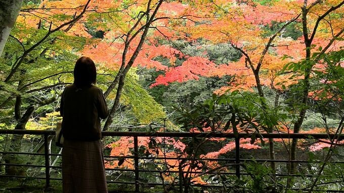 岡山県鏡野町の渓谷で紅葉が見ごろを迎え、多くの観光客を楽しませています。
