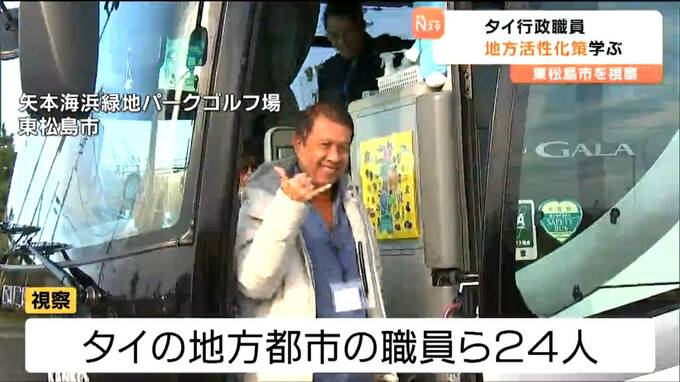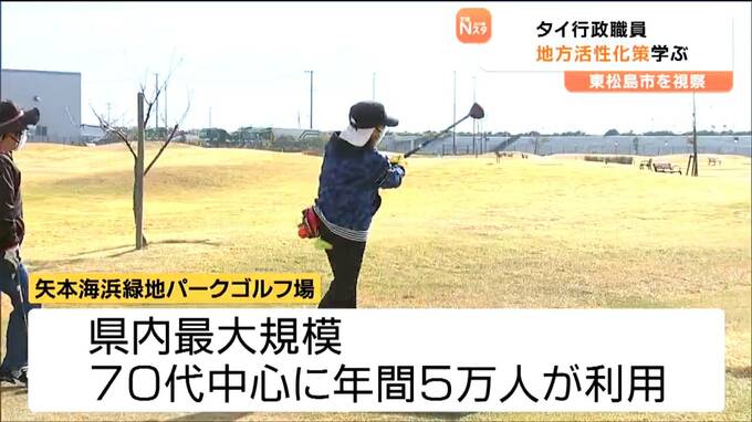 東松島市を訪れているのは、タイの地方都市の職員ら24人です。11月6日は矢本海浜緑地パークゴルフ場に足を運びました。