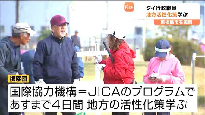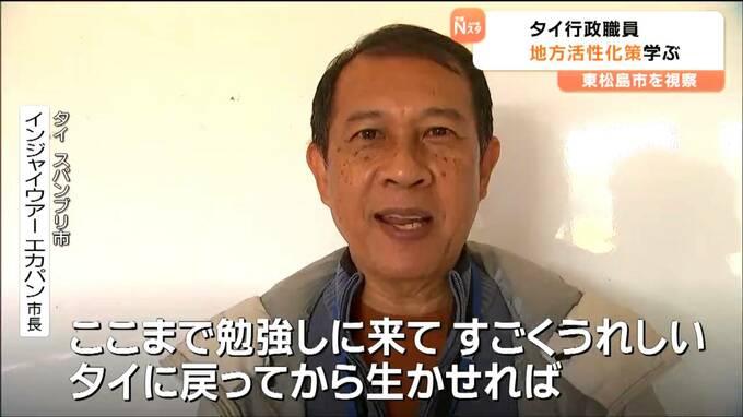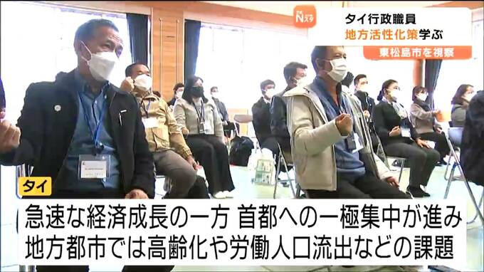 地方都市の高齢化や労働人口の流出など、日本と共通の課題を抱えるタイ王国の行政職員が宮城県東松島市に滞在し、地域活性化の取り組みなどを視察しています。