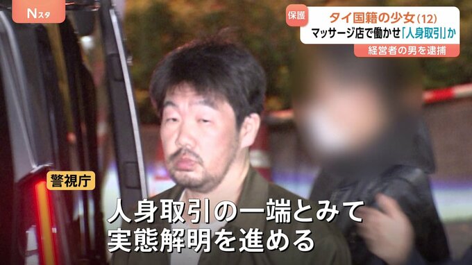 東京都内の個室マッサージ店でタイ国籍の12歳の少女を違法に働かせたとして、経営者の男が逮捕されました。警視庁は「人身取引」の一端とみて実態を調べています。おととい、警視庁が家宅捜索に入ったのは東京・文…